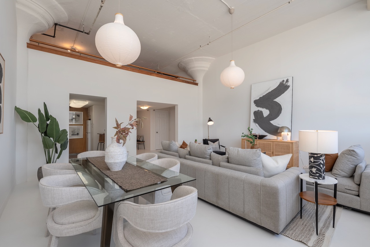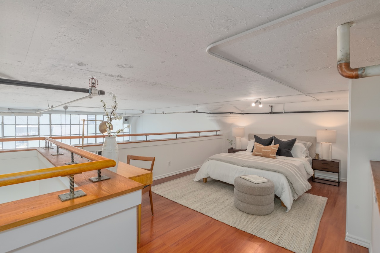 Step into an authentic hard-loft experience at the legendary Wrigley Lofts, a heritage landmark rooted in Toronto’s industrial past. Originally built in 1916 as the Wrigley Chewing Gum factory and converted in 1998, this storied building preserves its timeless character with a marble-clad lobby, original industrial detailing, and oversized freight elevators that speak to its history. This spacious live/work loft offers soaring 14-foot ceilings, dramatic mushroom columns, and expansive original warehouse windows that flood the interior with natural light throughout the day. Polished concrete floors enhance the loft’s raw aesthetic, while the open layout and mezzanine bedroom create both scale and intimacy. The suite includes an eat-in kitchen, a four-piece bathroom, stacked washer/dryer, in-suite AC, freshly painted surfaces, and a private storage room. Parking is also included. Perfectly positioned in vibrant Leslieville, you’re steps from independent cafés, restaurants, 24-hour TTC, and the future Ontario Line—yet living here feels like a world apart. This is more than a home: it’s a piece of authentic Toronto history designed for those who appreciate the beauty of industrial architecture.